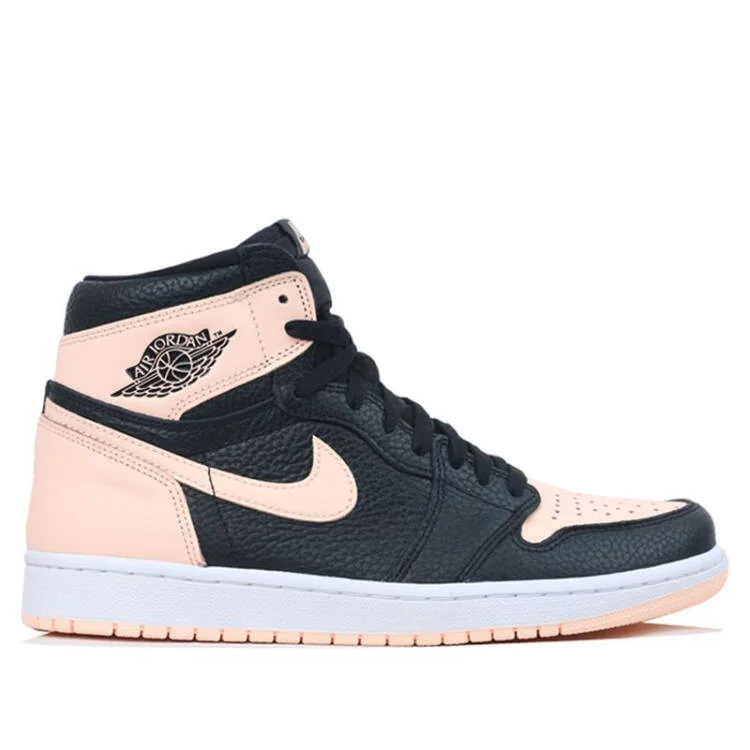 Air Jordan 1 Crismon Tint con tejido rugoso de color negro y color secundario de color rosa claro al estilo pastel.